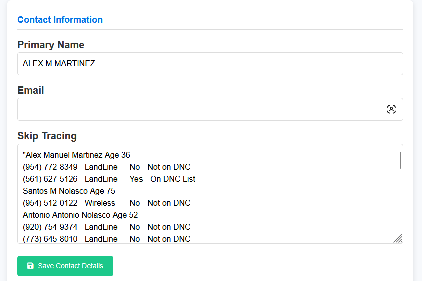 • Skip Traced Phone Numbers