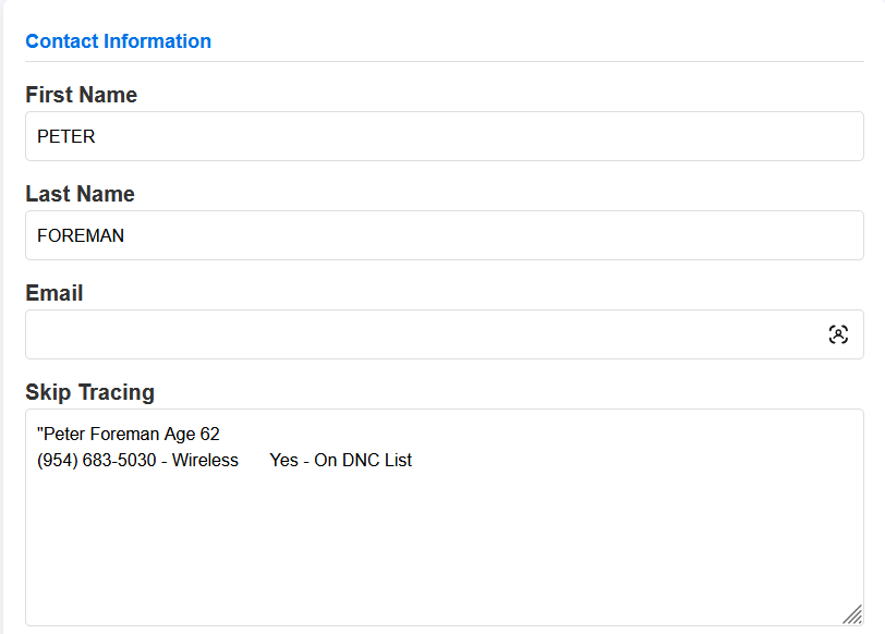 • Formatted Skip Traced Phone Numbers