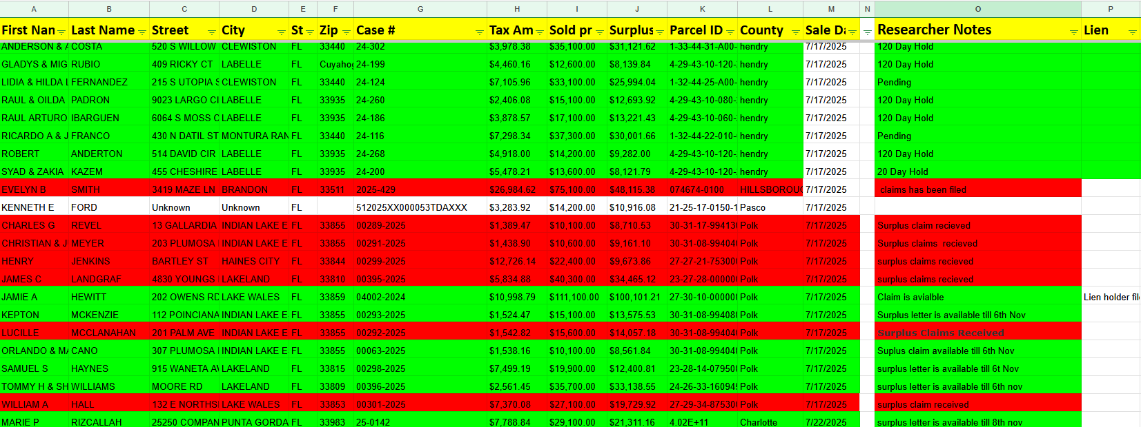 It’s not just about grabbing fresh auction data & vet them 1st hand, it’s about smart follow-up. We don’t just research on auction day; we run a second round of research on 7th Day & then 3rd round on 30th day of auction to later filter out leads that have already been filed / Redeemed Or Vacated as per the county. That way, you’re not wasting time chasing dead ends or competing for claims that are already in motion.